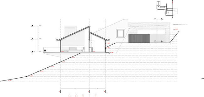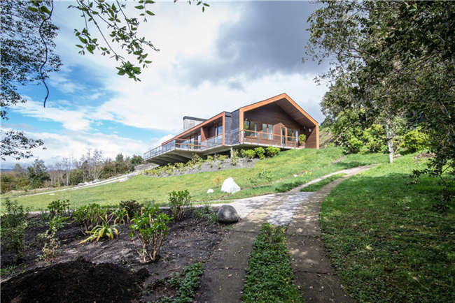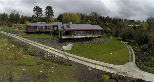 ED别墅位于智利南部的阿劳卡利亚地区,别墅建在一个陡坡上,陡坡尽头是一个湖。别墅的地基向下挖了,这样做是为了不打断别墅后部的视野。将来别墅修建好以后,越过别墅的屋顶也能看见湖区的景色,而不会因为地形的原因挡住看风景的视线。考虑到别墅的外形尺寸和别墅与湖面平行的情况,别墅并不会修建得很高。别墅被设计成可同时供两个家庭使用。别墅中心是一个很大的起居室,大到可容纳两个家庭的成员共同使用。下层楼面分成两个矩形的部分,这样设计是为了保护两个家庭的隐私。